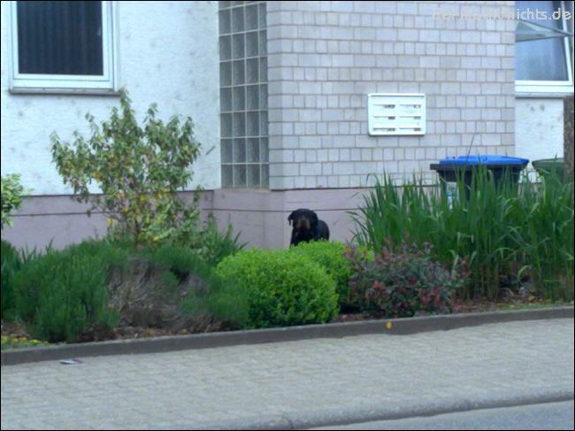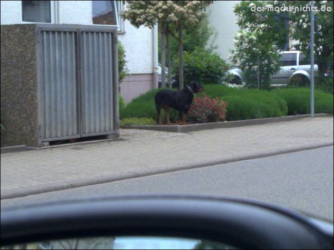 Am Montag, 28.04.2014 war es wieder einmal soweit. Der Rottweiler lief frei an der viel befahrenen Bahnhofstraße herum. Und wieder war kein Besitzer weit und breit zu sehen.